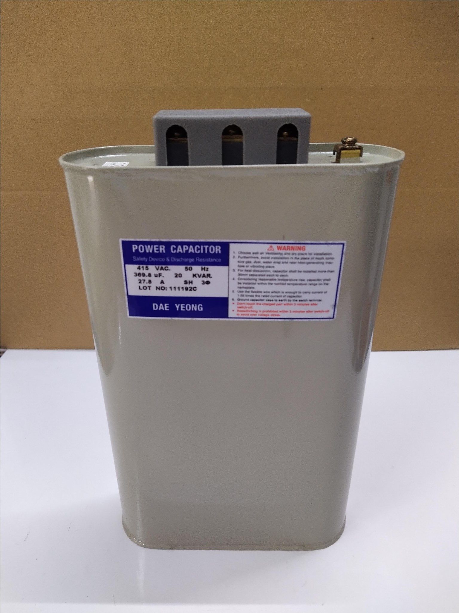 (Power Capacitor DAE YEONG 20KVAR, 415VAC, 369.8uF).